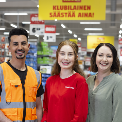 Työtehtävien monipuolisuus on henkilöstöltämme saadun palautteen perusteella yksi tärkeistä vahvuuksistamme työnantajana. Myymälä- ja varastohenkilökunnan lisäksi meillä työskentelee ammattilaisia mm. logistiikan, myynnin, kehityksen, hankinnan, markkinoinnin, laadun, IT:n, vastuullisuuden, turvallisuuden, viestinnän, talouden ja HR:n tehtävissä. Yhdessä varmistamme onnistuneen asiakaskokemuksen ja kehitämme Tokmannia eteenpäin.